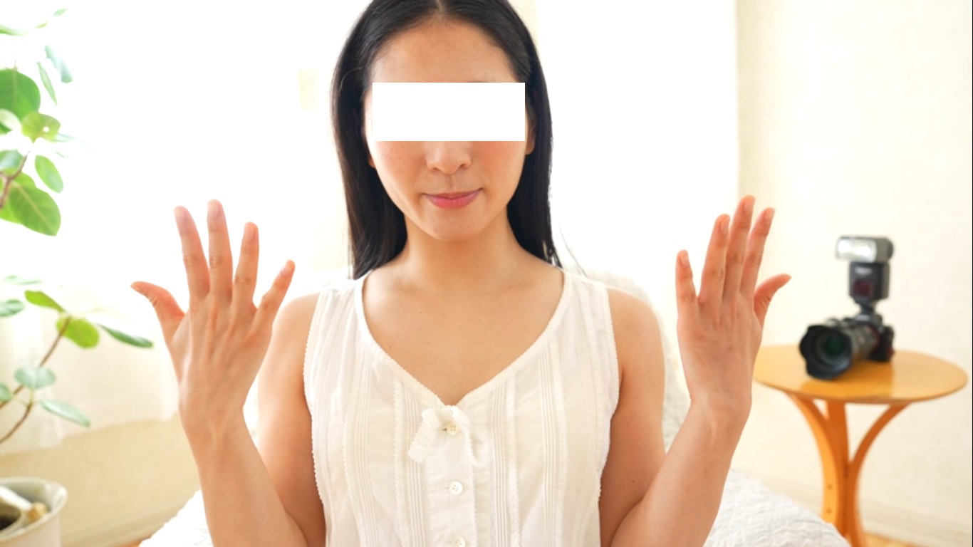 香取杏南さんが初めての作品でカメラを見つめながらポロリしています