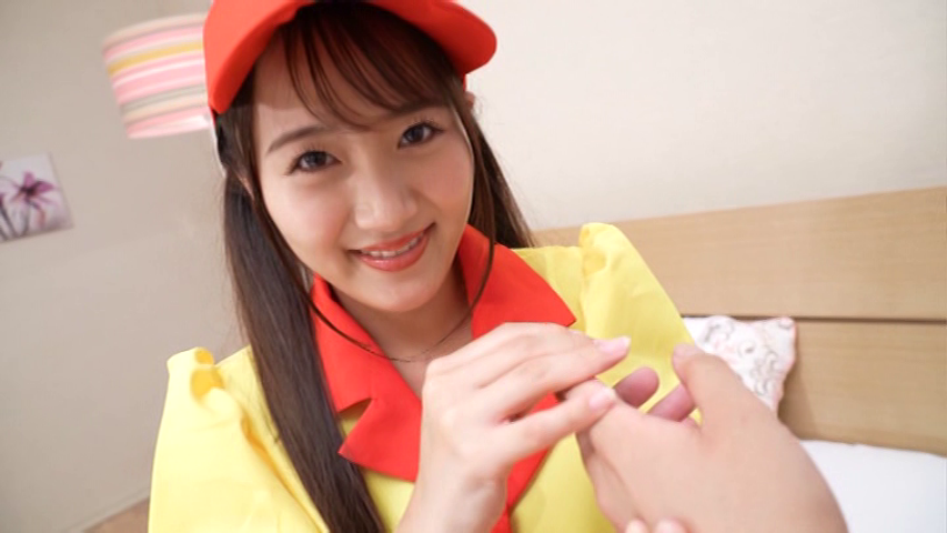 はるひさんがコスプレを着て笑顔で手ブラしています