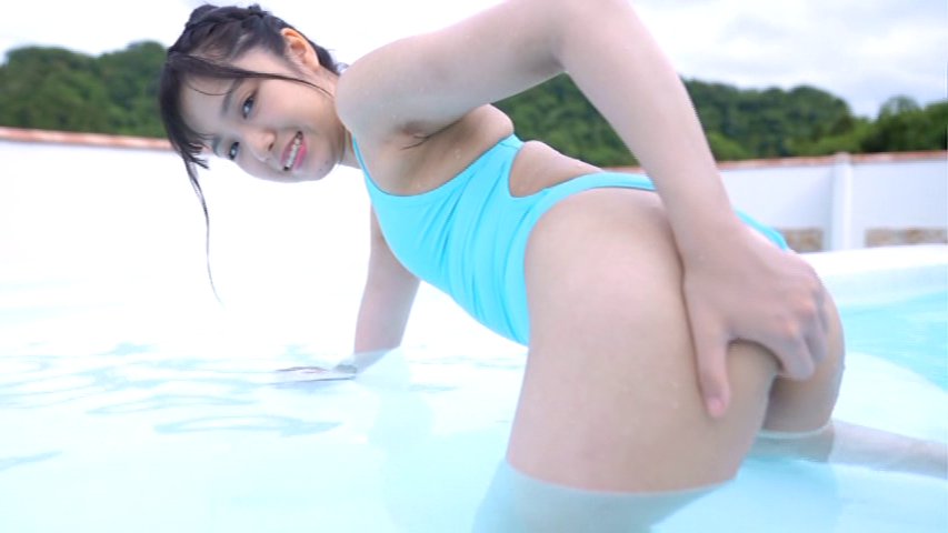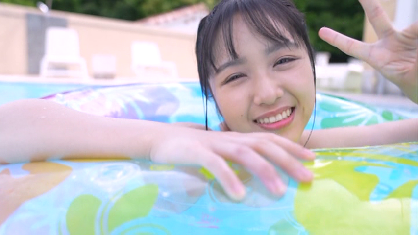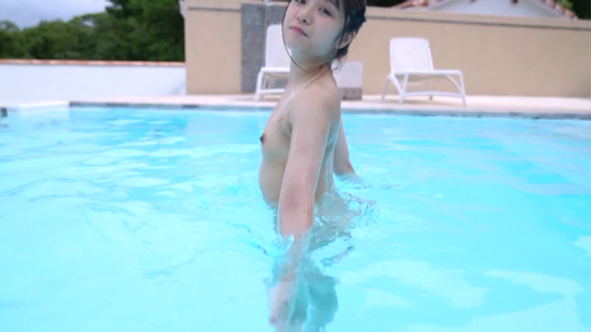 10年ぶりに入ったというプールでは、水着を脱ぐときにポロリしたり、膝を抱えたシーンでは無防備な状態になって横チラします。