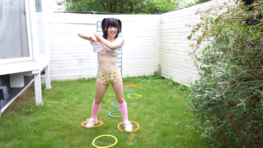 屋外の庭でボレロを着ると、ジャンプするたびに連続ポロリ。
