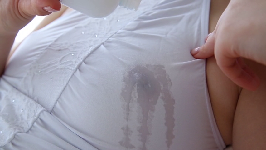 水風船のシーンでは、シースルー水着姿になったり泡ブラを見せます。
