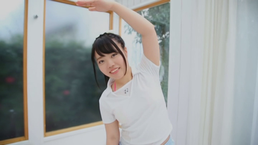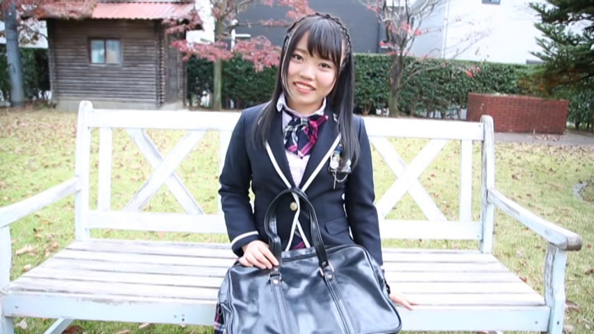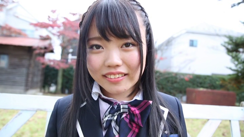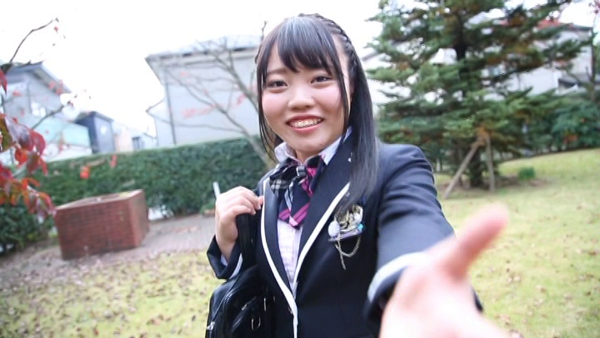 制服姿になって庭で撮影しながら、音声で自己紹介が流れます。