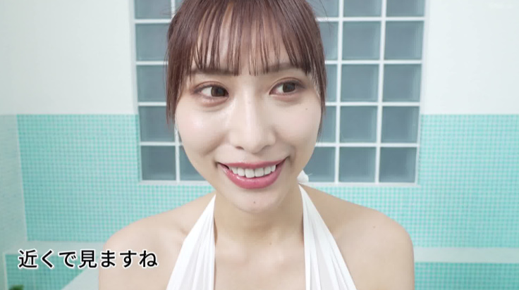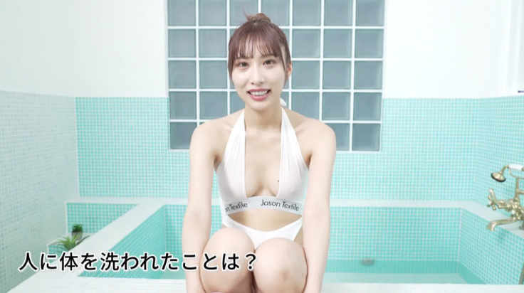 水着について尋ねられると、「穴がカッパーン、パッカーンって開いています」とどちらが正しい言い方なのかわかない様子をかわいく答えます。