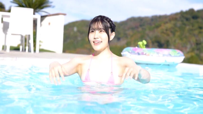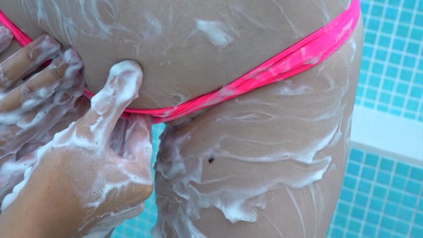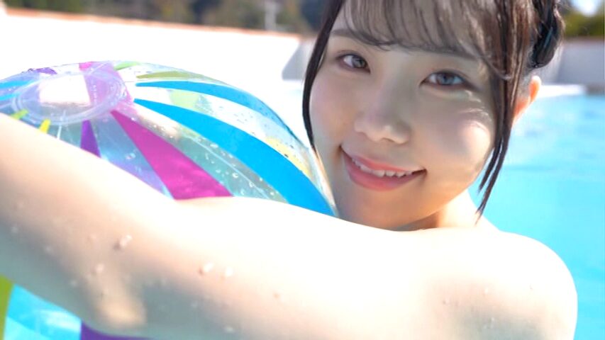 プールでも水中で裸になり、ポロリ。