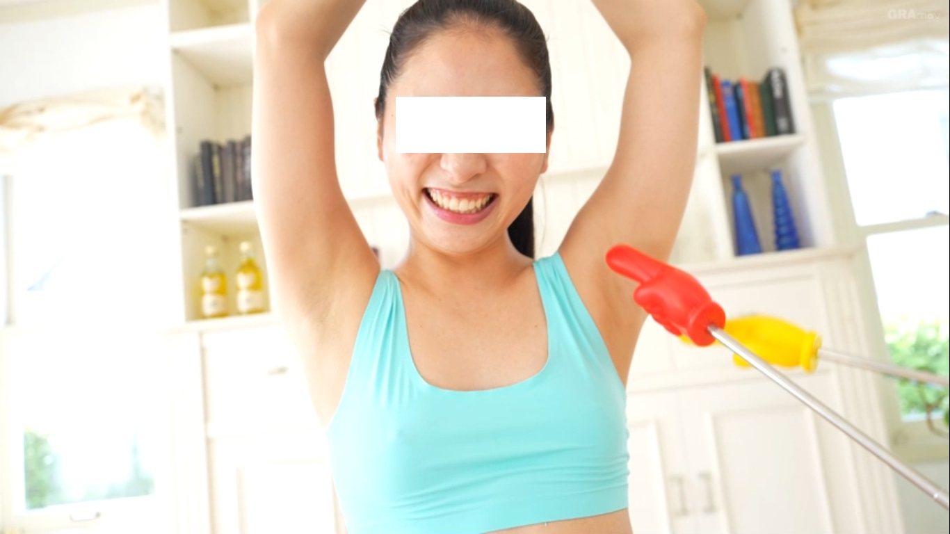 タンクトップをしてストレッチをすると水をかけられたり、胸に指示棒を入れられたりしていたずらが始まります。