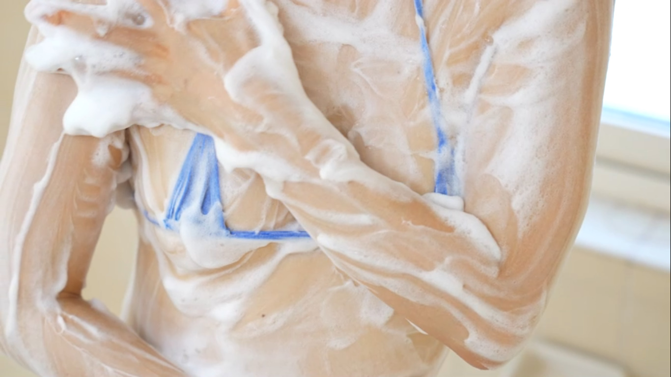 風呂では泡マッサージされ「あ、それヤバイ」と思わず声を出してしまいます。