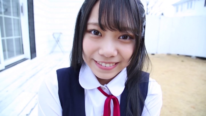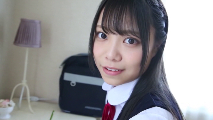 次の制服シーンでは、リボンだけ残して全裸になり、下着を脱ぐときにチラり。