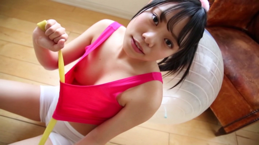 そしてタンクトップのシーンでは胸の中に入れたゴムチューブを引っ張ってチラ。