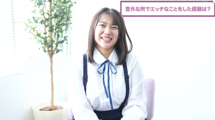 通常は質問されながら制服を脱いでいくのですが、花奈さんはきっとおもちゃが好きだろうということで、ときどきローターのスイッチをオンにされながら答えていきます。