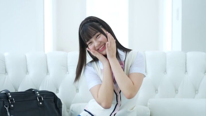 ソファに腰かけると、「見て!ましろの制服姿かわいいやろ?」