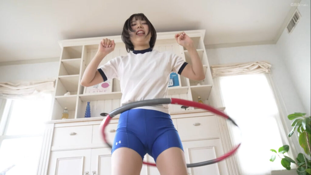 体操服を着ると体の柔らかいひめ花がストレッチしたり、フラフープで戯れます。