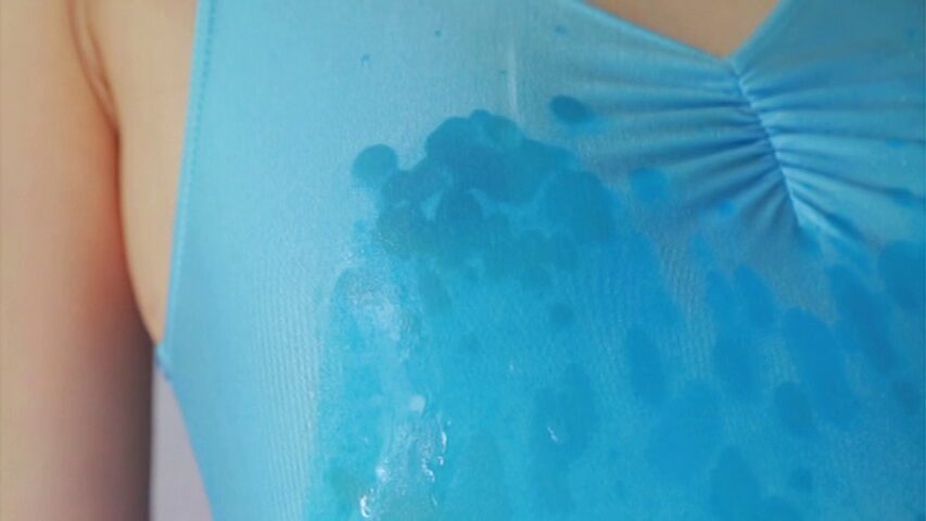 次のレオタードシーンでは水に濡れてチク透け。