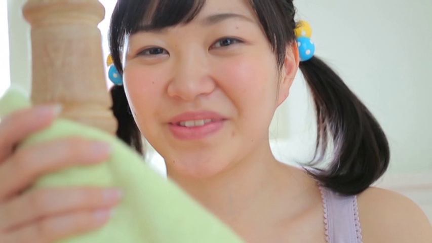 掃除シーンでは、服が小さすぎて両胸が丸見え状態に。