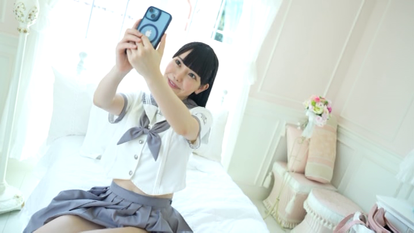 彼が少し部屋を出ている間にスマホで自撮りします。