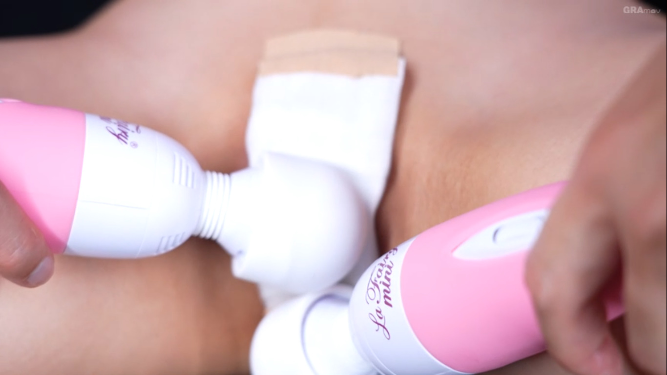 さらに固定された電マの上に自分から腰を当てて気持ちよくなります。