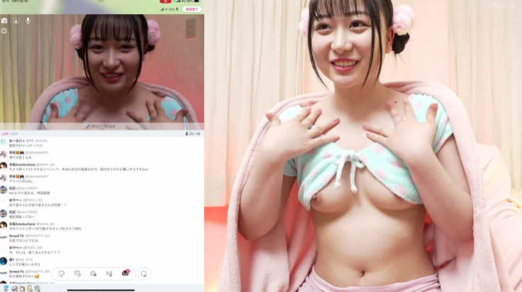 作品内容について話を戻しますが、ポロリがたくさん観られたり股を開いてプチプチで隠したり、生配信のシーンがあったりと見所の多い作品になっています。