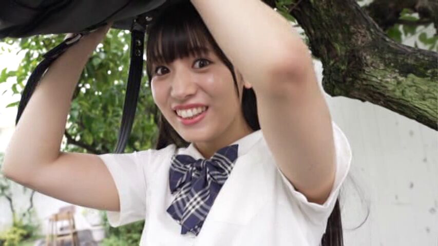 雨が降る中、浅田ひなさんが鞄を頭の上にのせて走ってきます。
