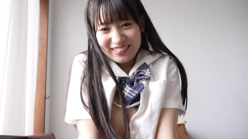 「そんなにじっくり見ないでよ」と言いながら「そんなに見たい?」と誘って制服を脱いでいきます。