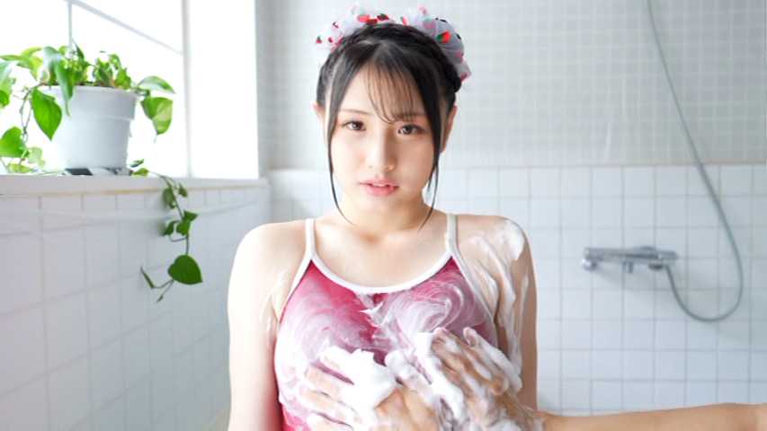 風呂のシーンでは水着を脱がされ、泡越しに胸をオープン。