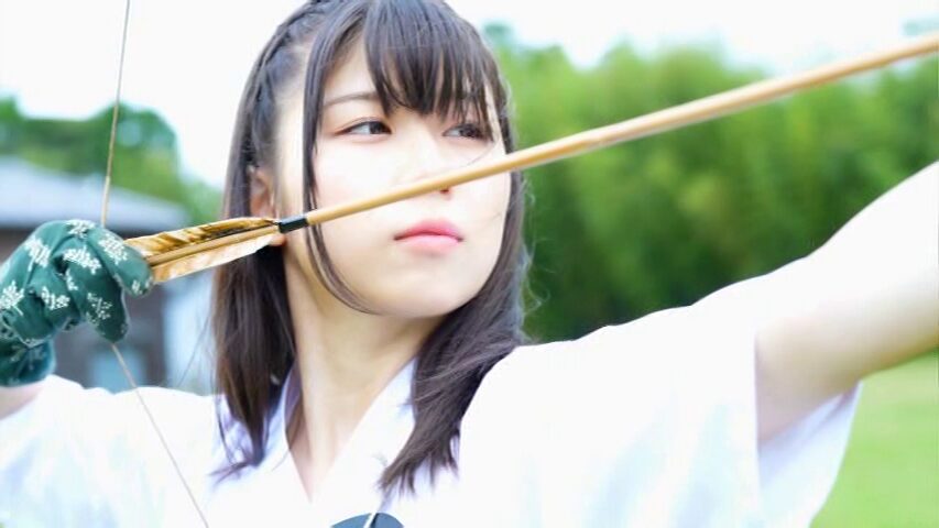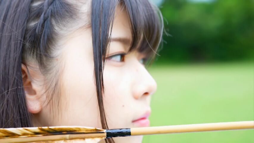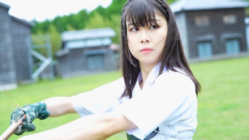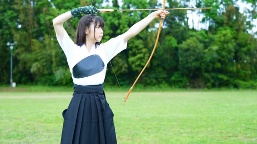 凛とした空気の中、渡邉日向さんが弓を引きます。