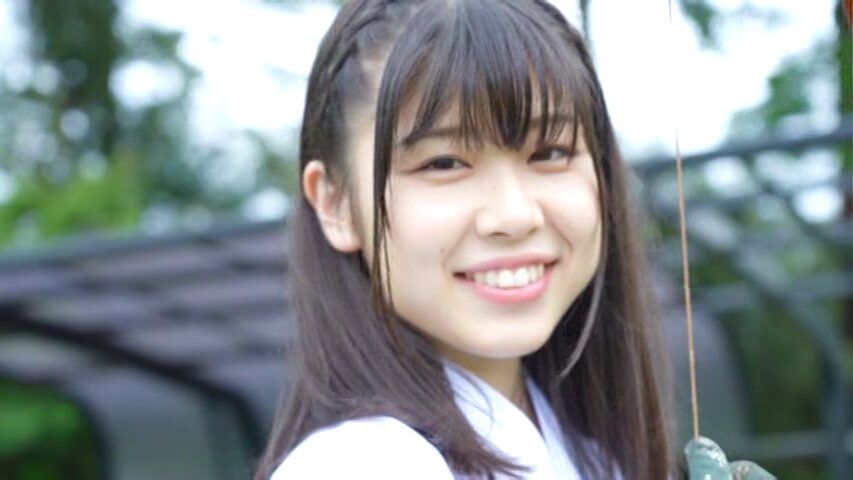 これまで見たことないほどの真剣な表情で的を射ると、緊張から解放されたのか笑顔で微笑んでいます。
