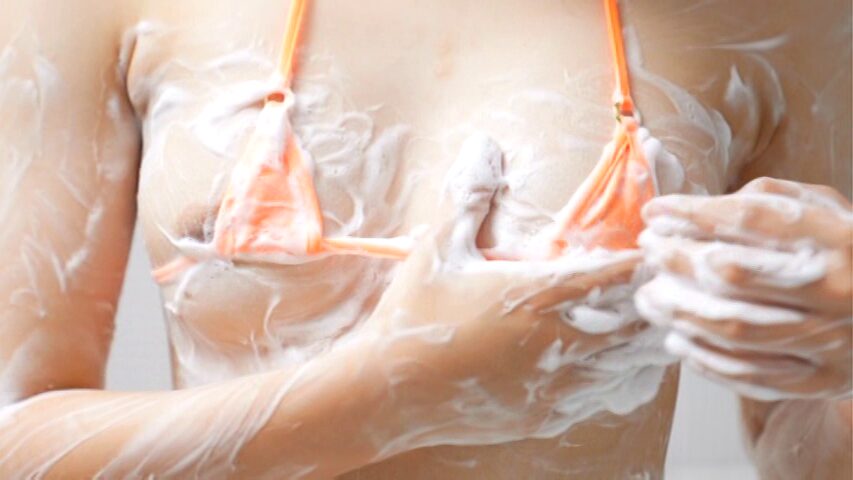 風呂シーンでは泡でセルフマッサージするときに何度かチラり。