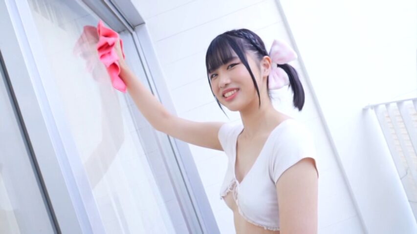 下着姿になってからもしばらく輪チラしながら答え、ブラを外すときに初めてのチクちら披露。