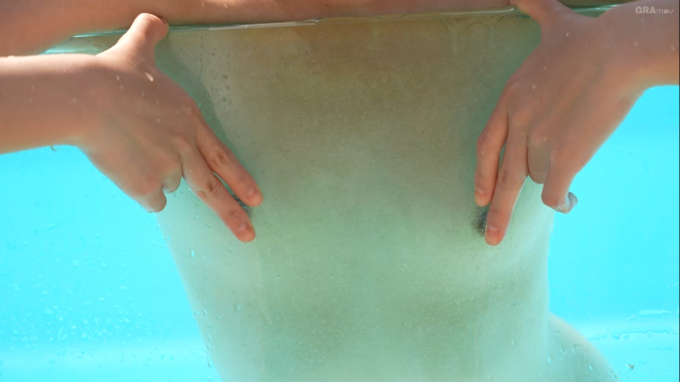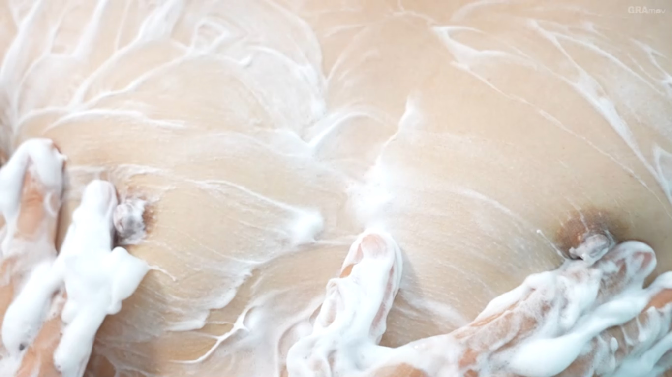 さらにベッドの上でシースルーの布を纏ってセルフマッサージ。