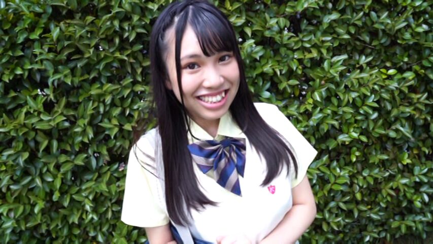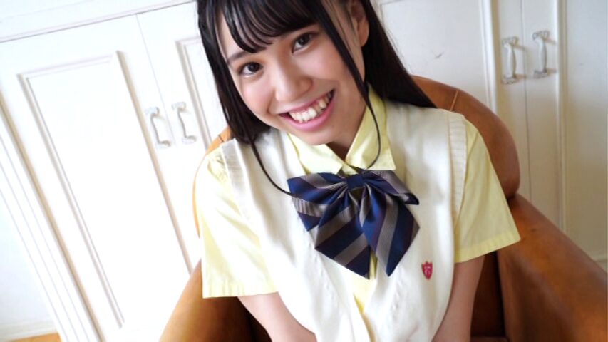 まず制服のブラウスのボタンを外して前を開くと、面積小さいビキニを見せます。