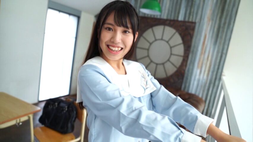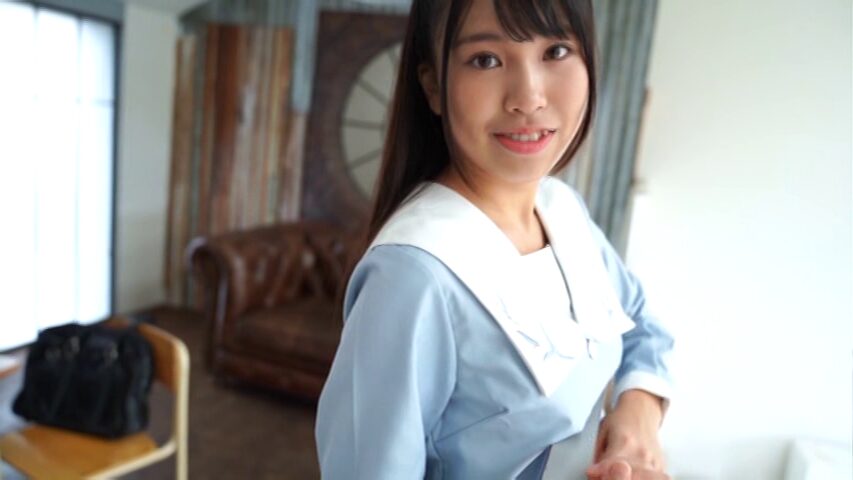 本編がスタートすると、ふみさんが机に股間を押し付けた後にセーラー服の前を開きます。