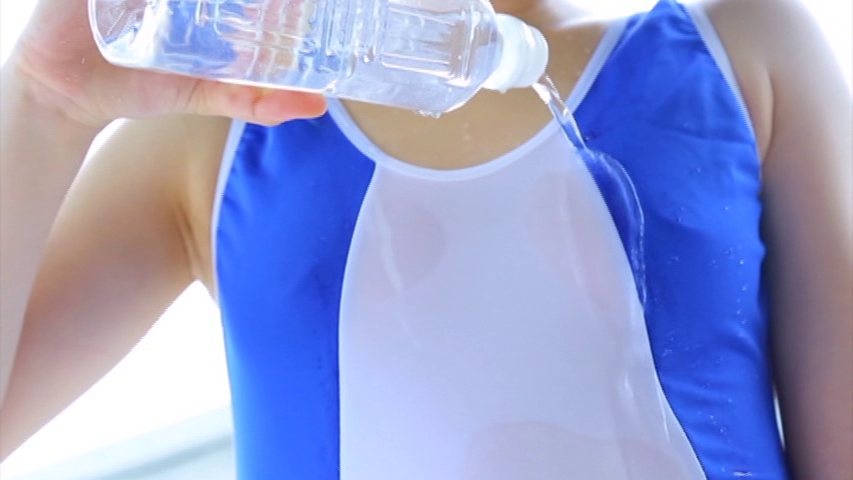 水を浴びてチク透けや形のいいお尻や股を見せます。