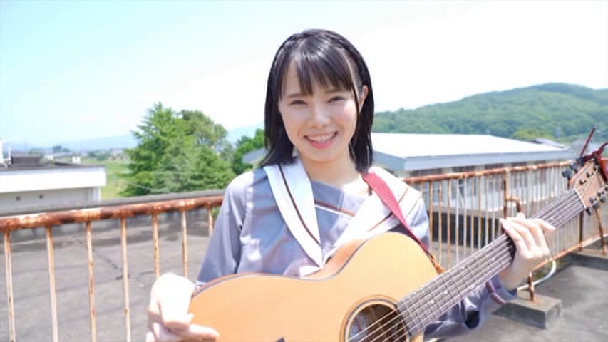 屋上でギターを弾いている緑香さんを見つけるシーンから始まります。