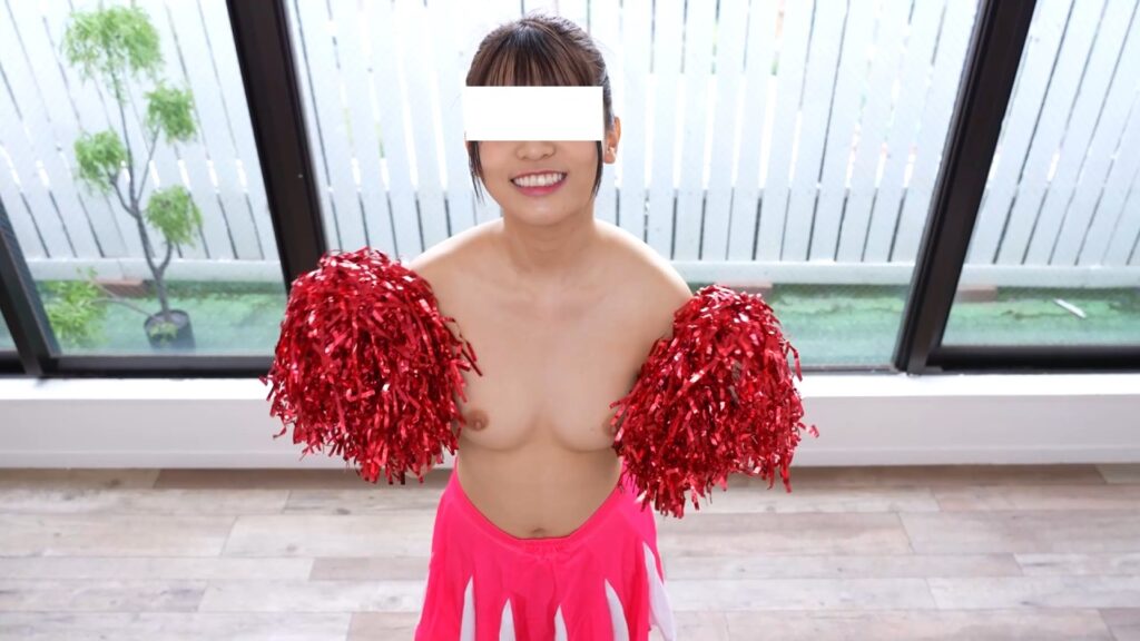チアリーディングで応援を始めると、実は両手に持っているのはおもちゃで、それを股間当て。