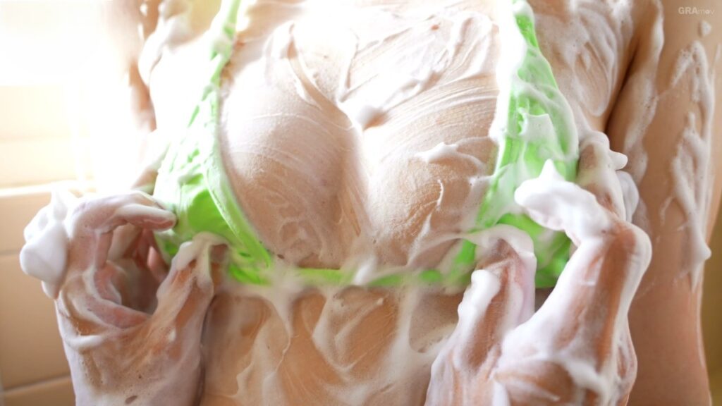 バスルームでは激しめに胸やお尻を擦られて思わず声が漏れ、