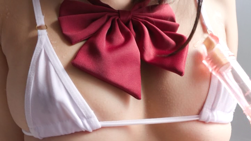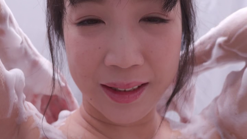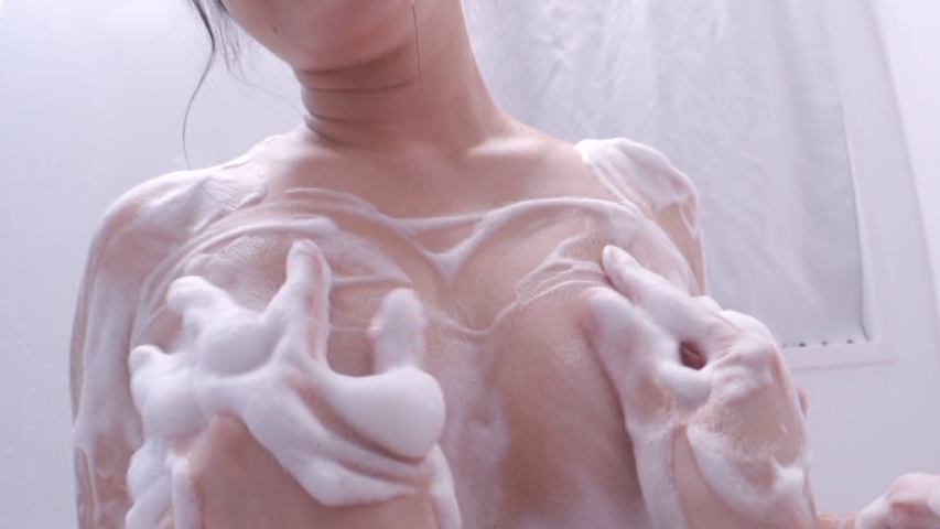 風呂に入って水を浴びると衣装が透けてしまい、さらにセルフマッサージを始めます。