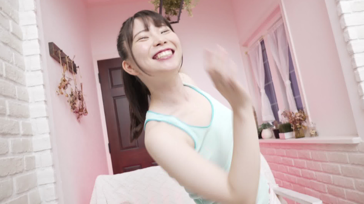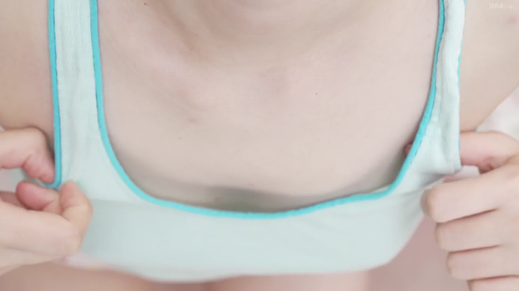 すると前かがみになって自らタンクトップを引っ張って、胸チラがアップで映し出され、
