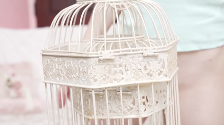 さらにパンツを絞って見せたり、スコップでお股を隠したり、鳥かご?を前においてパンツを脱ぎだします。