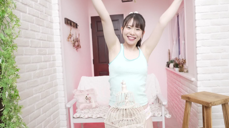 こずえさんがタンクトップにパンツ姿で登場。