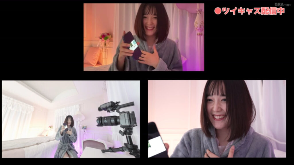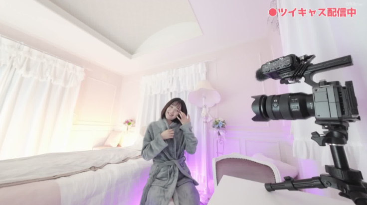 今回は生配信をした後に、ベッドで一人エッチをするというシーンになります。