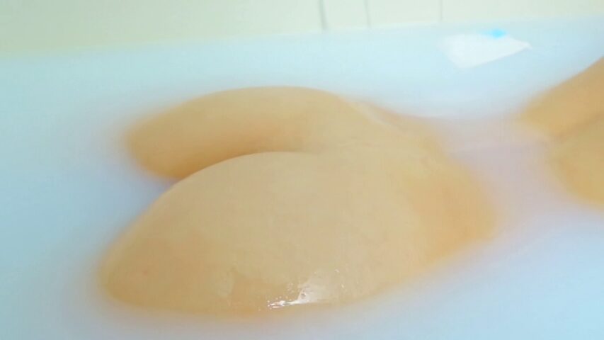 バスルームでは泡でセルフマッサージの時に泡越しのポロリ。