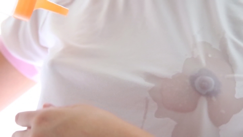 レオタードに着替えて水を浴びると、もともと薄くてチクぽちしていたレオタードからチク透けしてしまいます。