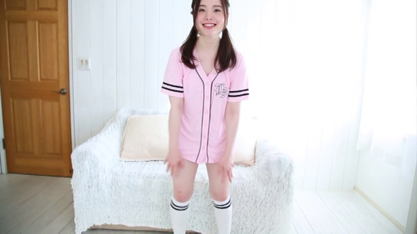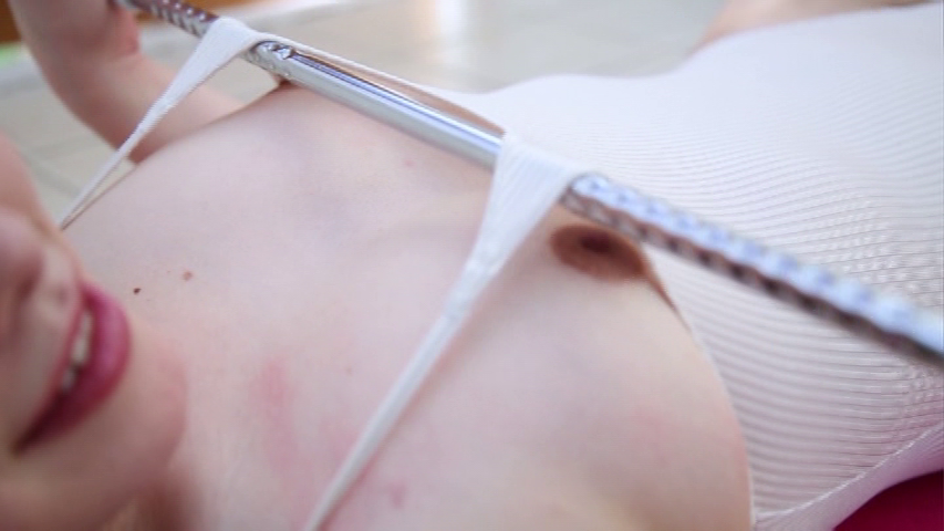 まずレオタード姿からスタートすると、バトンを胸の中に入れて引っ張りチラするサービスを見せてくれます。