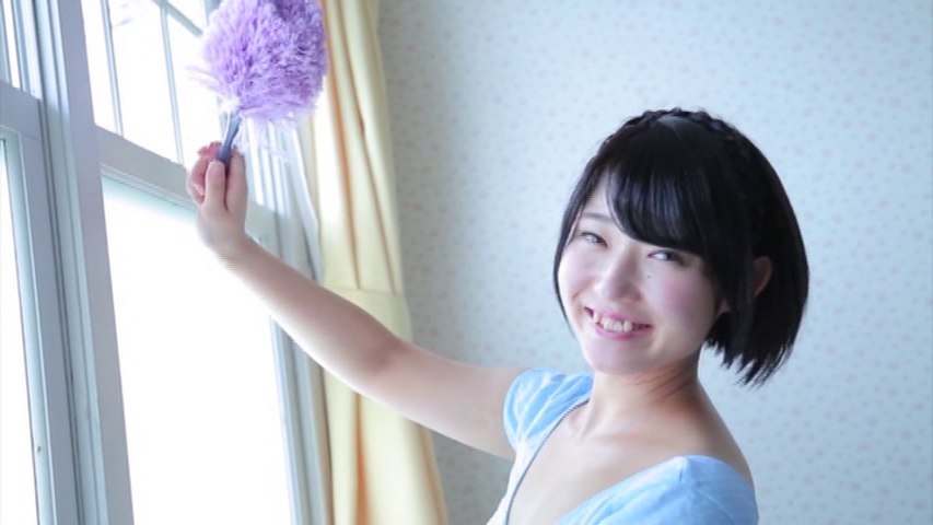 続いてボレロを着てお掃除シーンでは、前かがみでテーブルを拭く時やクリームを胸に塗るときにポロリ。