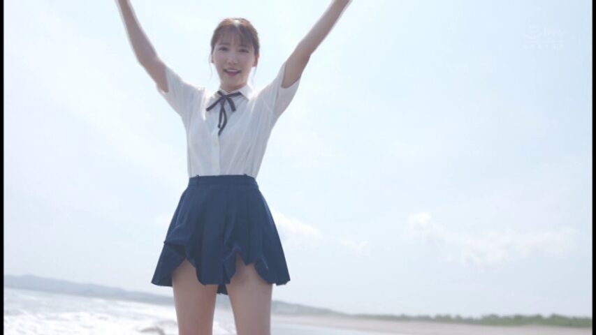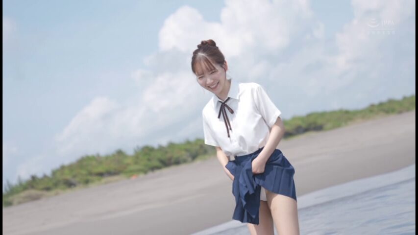 制服姿で海岸で楽しく遊ぶと水着姿になります。