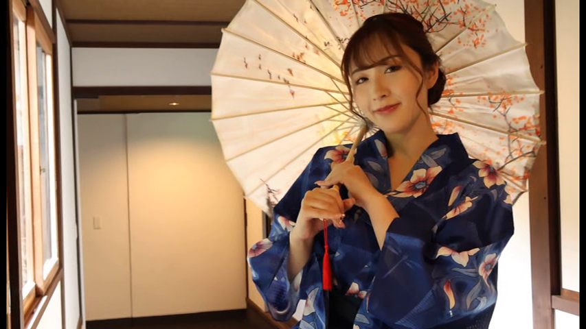 しかし部屋の中では浴衣姿になってカメラにポーズをとったり、料理を楽しんでいるシーンもあります。