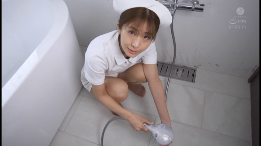 続いてナース姿になるとなぜかシャワールームへ入り、シャワーを浴びたり浴槽に浸かります。