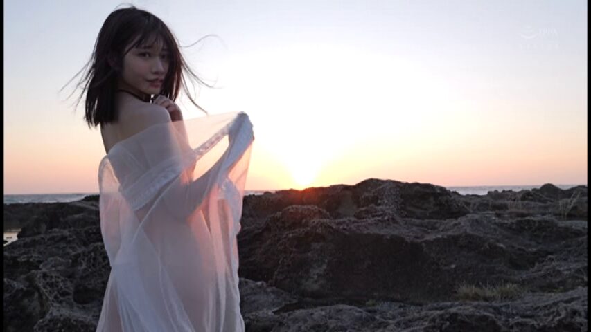 河北彩伽さんが海の見える場所で美しいヌードを披露しています