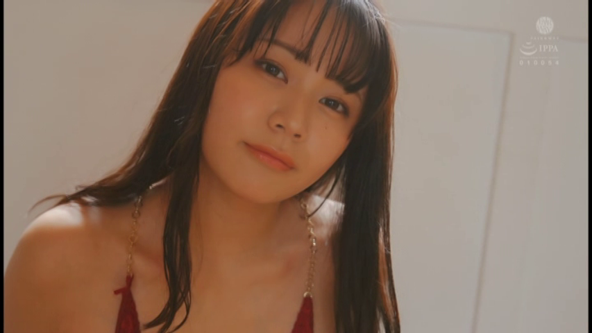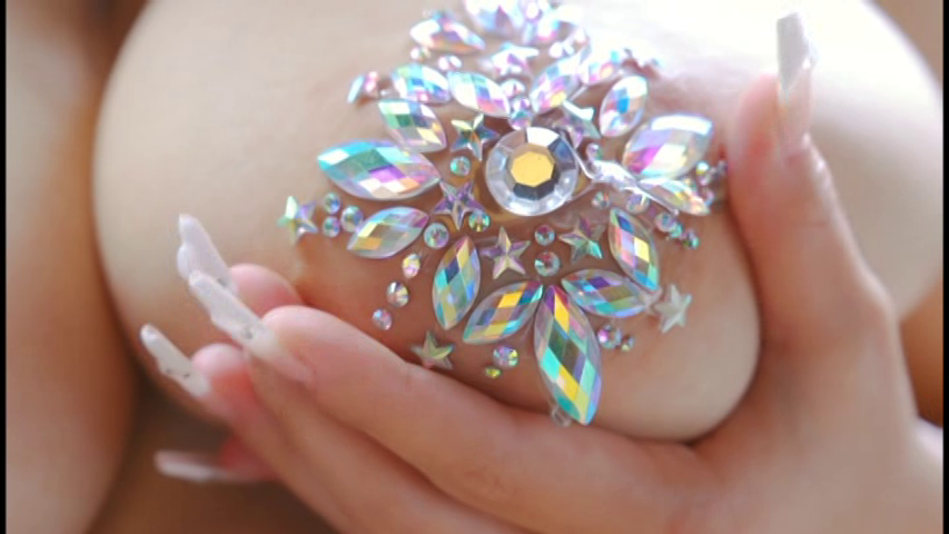 最初のシーンでは、胸を隠すはずの衣装が全く役に立っておらず、最初から先端がはみ出しています。