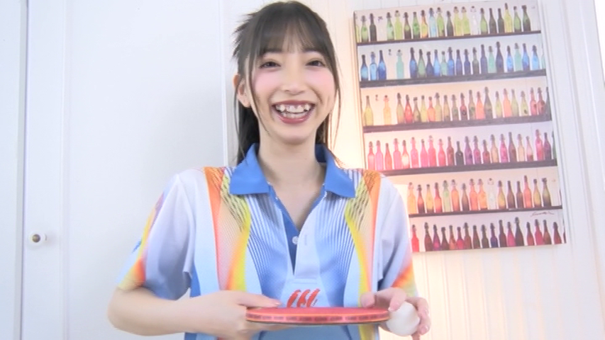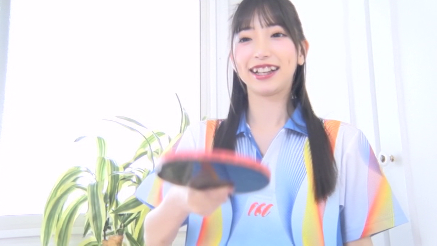 まず最初は卓球のユニフォームを脱ぐと、白い前貼りだけになった状態になり、きれいな縦スジを披露します。
