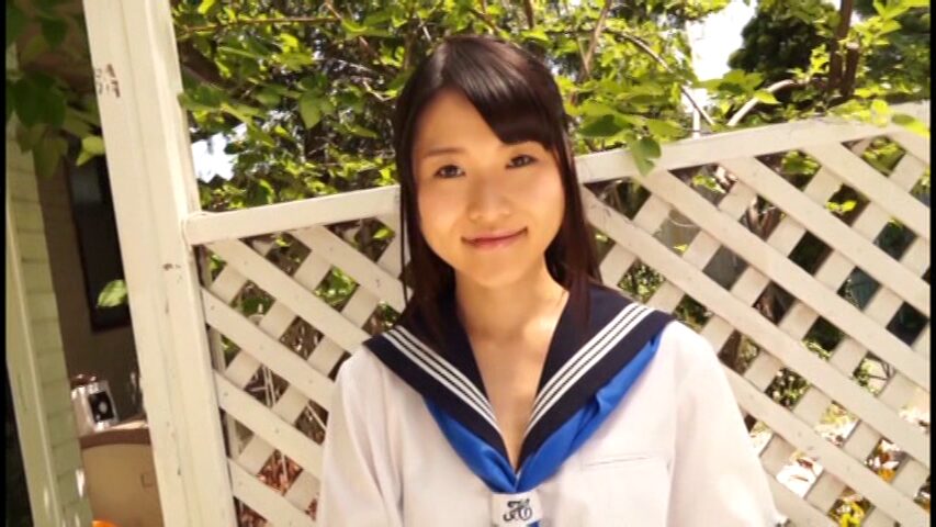 制服姿で始まり、上半身裸になった状態で腕で胸を隠すと、隠し切れずにポロリ状態に。